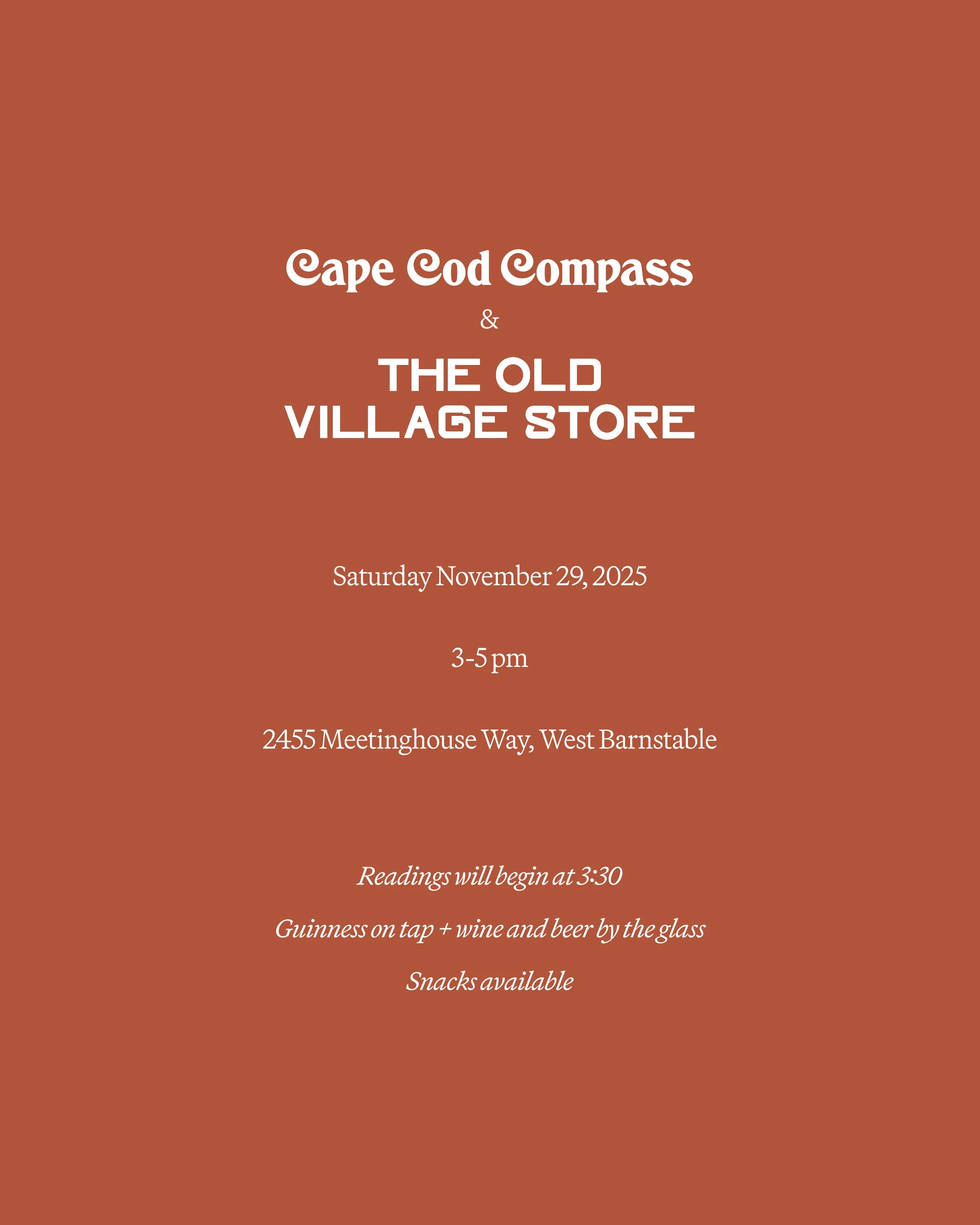 Join us for a special holiday weekend event with our friends from Cape Cod Compass. Readings will begin at 3:30PM. FREE. Limited capacity.